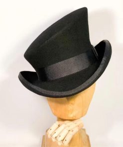Crafted from high-quality felt material, this top hat features an asymmetric design that sets it apart from traditional styles. The sleek silhouette and sharp lines create a modern twist on a classic look, making it the perfect statement piece for formal events, parties, or special occasions.