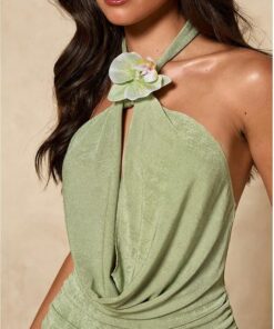 - You can pair this cowl neck halter dress with strappy heels, a clutch bag, bold earrings, and a statement bracelet for a glamorous look