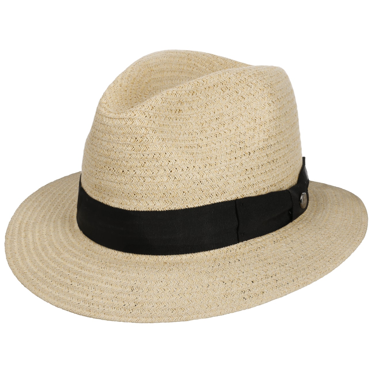 With its elegant colour contrast, the traveller hat can definitely be worn on special occasions on warm summer days. The easy-care viscose material is also known as Toyo straw, thanks to its special look. It gives the hat a light and airy charm that is perfectly complemented by the flat brim. The wide grosgrain ribbon provides the classic frame.