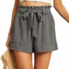 - fashion style: Summer casual shorts with Pockets are a perfect combination of style and comfort, High-waisted design tie-knot provides ample coverage, the above knee length and high waist shorts can stretch the proportion of the figure, make your legs look slender and longer visually to have a charming shape. decorative drawstring design for this women shorts add more stylish element.