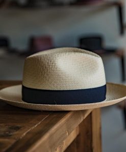 Casual Chic Straw Hat, This is a medium height centre dent panama with a 7 cm / 2.75 in – 8 cm / 3.15 in brim. It features a 38 mm puggaree hatband.