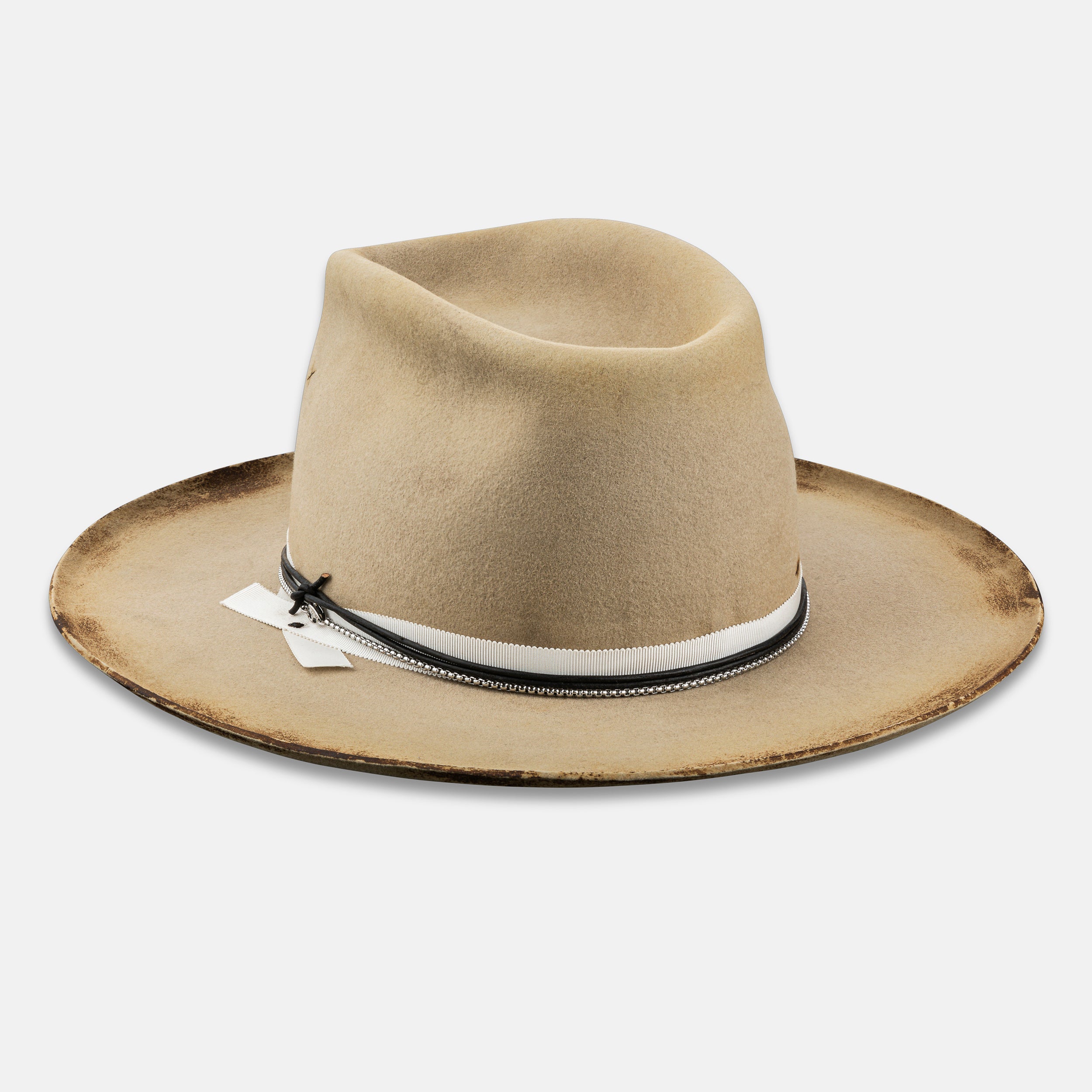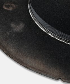 This Vintage Distressed Fedora, a durable and stylish hat that exudes gentlemanly charm. Each hat is meticulously handcrafted from distressed black wool felt, ensuring that no two hats are exactly alike. The vintage-inspired design gives this hat a unique and timeless appeal, making it a versatile accessory for any occasion. Elevate your look with this one-of-a-kind Vintage Distressed Fedora that combines durability with sophistication. Add a touch of old-world elegance to your wardrobe today!