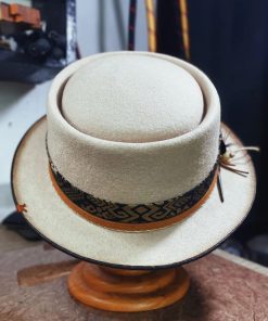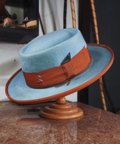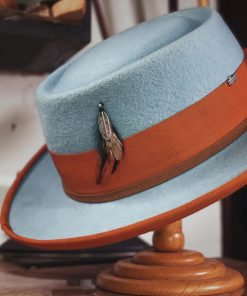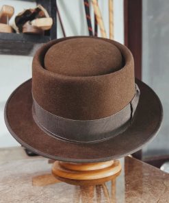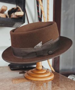 Crafted with a felt finish, the Porkpie Hat was uniquely designed with a round, telescope crown. This high-quality, statement hat features a luxurious felt finish appropriately worn for any occasion.