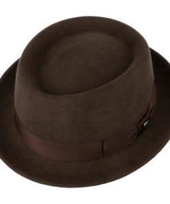 The ideal hat looks good and impresses with its comfort and ability to bounce back. This Italian-made pork pie hat in high-quality wool felt meets all these requirements. The felt hat owes its stylish appearance to the plain-coloured design and grosgrain ribbon trim above the smartly turned-up brim, which is held in place by a bow.