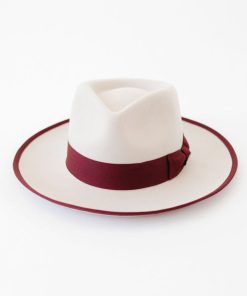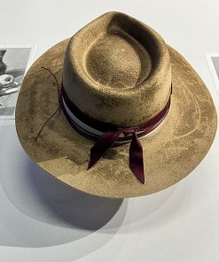 “Distressed Fedora with Red Striped Edge ” is hand-distressed, hand-dyed, and hand-torched, ensuring no two share the same color or design. Each piece is uniquely imperfect, with subtle variations from product images.