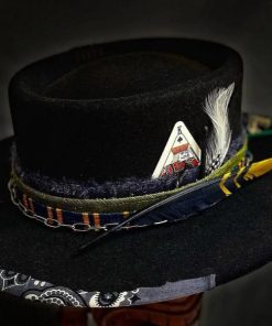 “Distressed Fedora with Rounded Crown and Colorful Ribbon Adornments” is hand-distressed, hand-dyed, and hand-torched, ensuring no two share the same color or design. Each piece is uniquely imperfect, with subtle variations from product images.