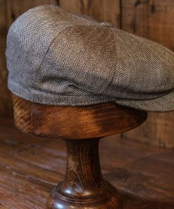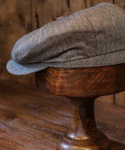 The “Eight Piece Grey Herringbone Linen Newsboy Cap”. Made from high-quality linen material, this cap features a unique eight-panel design that gives it a stylish and sophisticated look. Whether you’re dressing up for a special occasion or simply looking to elevate your everyday outfits, this newsboy cap is the perfect accessory. With its comfortable fit and timeless charm, it’s sure to become a staple in your collection.