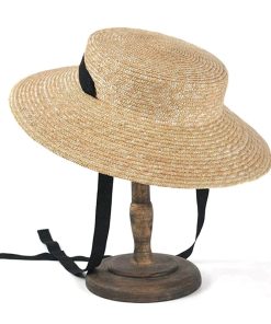 Flat Top Straw Beach Hat with Tie Top