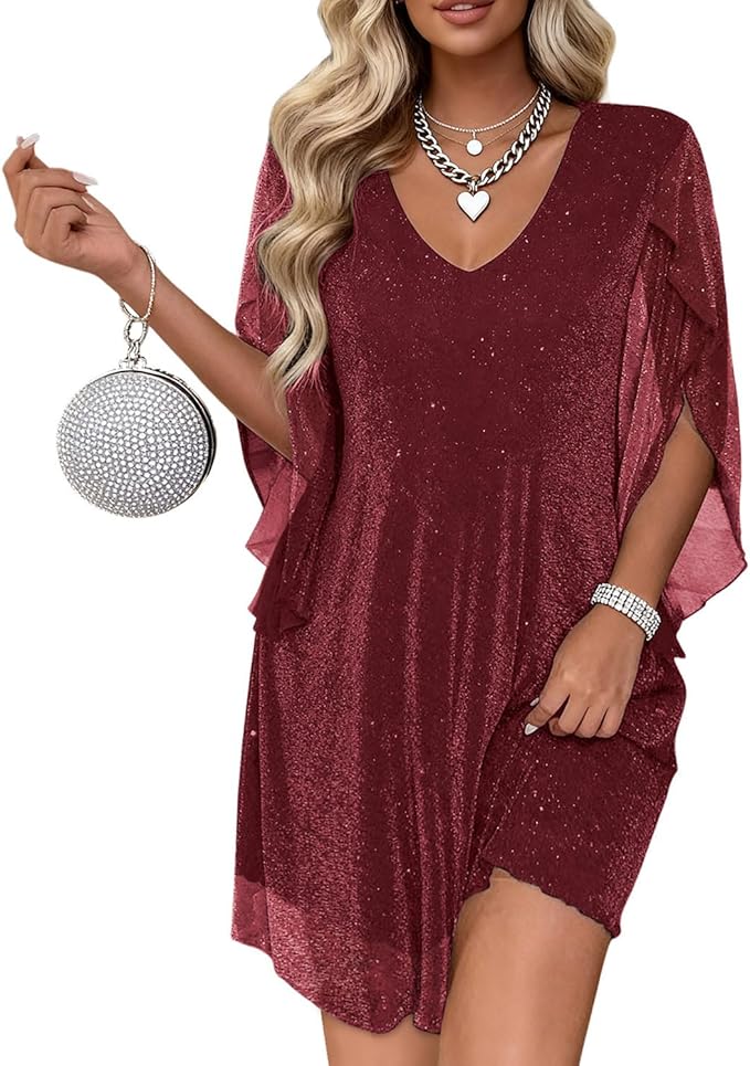 - This sequin cocktail dress for women with 3/4 sleeve made of blended fabric, soft, comfortable, lightweight, loose and fit, full lining to protect the skin, sparkle elegant.