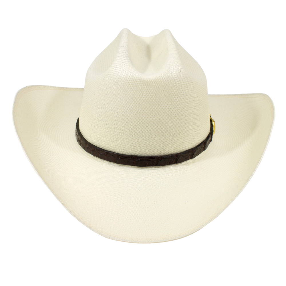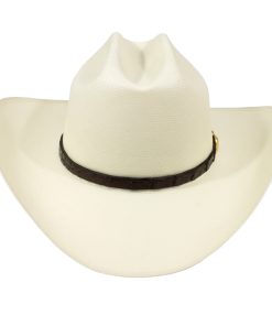 The Evilla De Oro 1000X Straw Cowboy Hat, a pinnacle of craftsmanship and sophistication. This pure handmade premium cowboy hat is crafted from 1000X 100% Shantung straw, ensuring both quality and style. The hat features a classic Cattleman crown, accentuated by a matching self-felt hatband and a striking 3-piece 10K gold buckle accent for a touch of luxury. Designed for comfort, it includes a leather sweatband and a satin liner. With a 4″ brim and a 4″ crown, this hat strikes the perfect balance between tradition and modern elegance. Elevate your Western look with the exquisite Evilla De Oro cowboy hat.