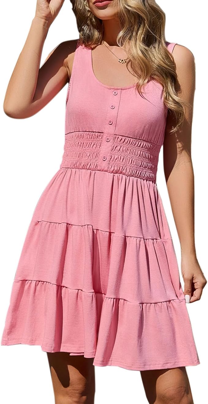- Fabric:65% rayon and 35% polyester.This women’s summer dress is crafted from premium materials, ensuring it’s comfortable, stretchy, breathable, lightweight, and soft against your skin.Stay in high spirits all summer long with our breezy women’s sundress