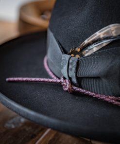 Modern Felt Hat, This is a medium height centre dent with a 7 cm / 2.75 in overwelt pencil roll brim. It features a 38 mm modern grosgrain hatband with a double back bow & leather cord.