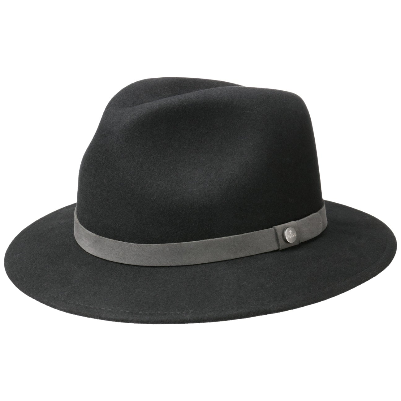 This traveller hat is well-equipped to deal with the cold and rain: It owes its warm wearing comfort to the supple, robust felt made of processed wool, while it defies the rain and damp conditions with its water-repellent properties. A crushable finish makes the felt hat a practical and comfortable companion for outdoor activities, which looks stylish with outfits thanks to its monochrome, narrow, contrast-coloured leather trim.