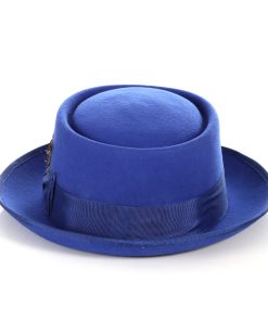 The Red Wool Felt Pork Pie Hat, a timeless accessory that combines elegance and style. Crafted from premium fur felt, this hat features a distinctive flat crown and a narrow brim, providing a sophisticated yet casual look.