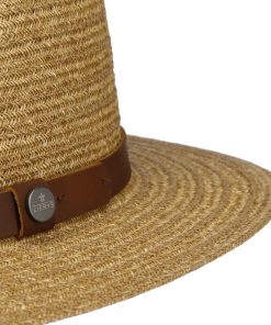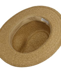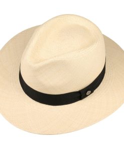 The timeless design of the traveller focuses on the look of the beautiful material from which it is made. The fine weave features a small, delicate zigzag that adorns the head and brim. The natural differences in colour set off the pattern attractively by creating a heathered look. A wonderfully classic summer traveller for sunny days.