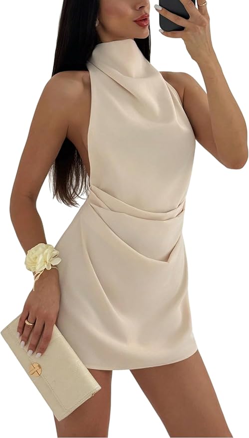 Be the first to review “Satin Halter Backless Mini Dress CH87” Cancel reply