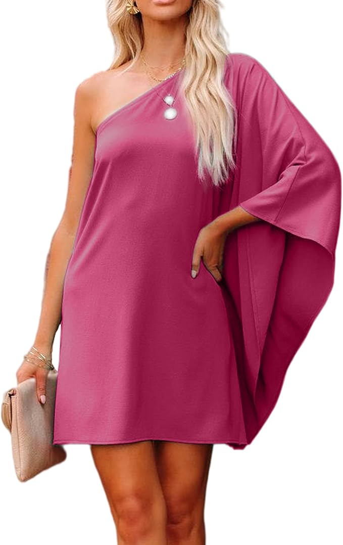 - Feature:One Shoulder,Ruffle Sleeve,One Sleeve,Loose but showing figure,Elegant Style,Flowy,Elegant