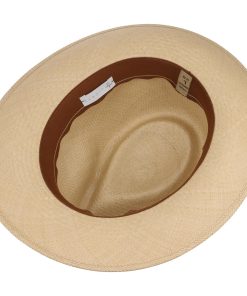 This summery fedora is made up of fine Panama straw with a smooth quality. Not only does the monochrome summer hat sit firmly and comfortably, it is also impressively stylish with its characteristically dented crown and grosgrain ribbon trim with decorative seams. The straw hat’s striking charm will win you over, whilst impressing you with its confident elegance.