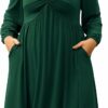 - Feature: The feminine sweetheart neckline is the standout feature of this tea party dress, beautifully highlighting your clavicle. square with deep v-neck,twist knot front,long puff lantern sleeve, pockets on both sides of the dress can hold your keys etc,The pleated waist at the front hides the belly,Slimming the figure, showing femininity