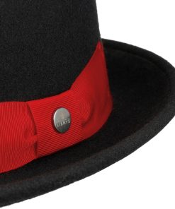This plain-coloured felt hat reveals its elegant nature. Made of 100% wool felt, it will win you over with its practical properties as well as its attractive look: As a water-repellent and crushable outdoor hat, it’s great to take along to many different events. The contrast-coloured corded ribbon with bow and subtle logo emblem acts as a decorative eye-catcher.