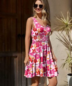 - Material: Rayon. The fabric of casual summer dress is lightweight and skin-friendly to wear which has good air permeability. A comfortable cut is generous, beautiful and easy to pull on and off. Flowy dress is also the best piece for hiding meat and embellishing leg shape!