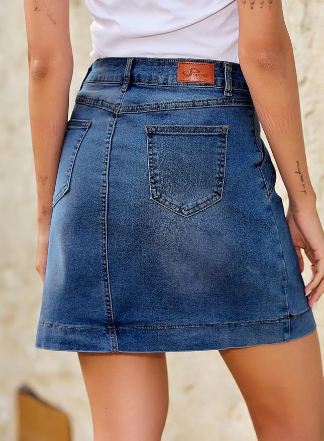 - Material: Crafted from a stretch cotton-blend denim, this high-waisted skort offers all-day comfort and ease of movement, while sculpting a flattering silhouette.