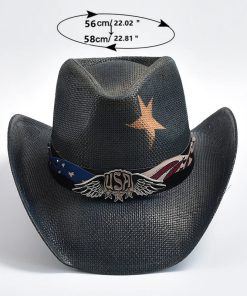 Vintage Straw Western Cowboy Hat Jazz Hat, a stylish and nostalgic accessory that pays homage to the classic Western cowboy style with a touch of jazz flair. Crafted from high-quality straw with a vintage design, this hat brings a sense of authenticity and charm to your wardrobe. The wide brim provides shade and protection from the sun while adding a distinctive look to your outfit. Whether you’re attending a music festival, exploring the countryside, or simply want to make a fashion statement, the Vintage Straw Western Cowboy Hat Jazz Hat is the perfect choice. Channel your inner cowboy spirit with this versatile and stylish hat that seamlessly blends Western tradition with a touch of jazz sophistication.