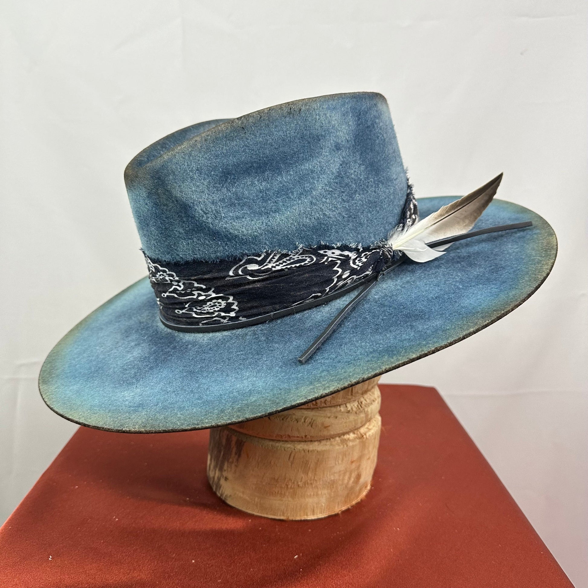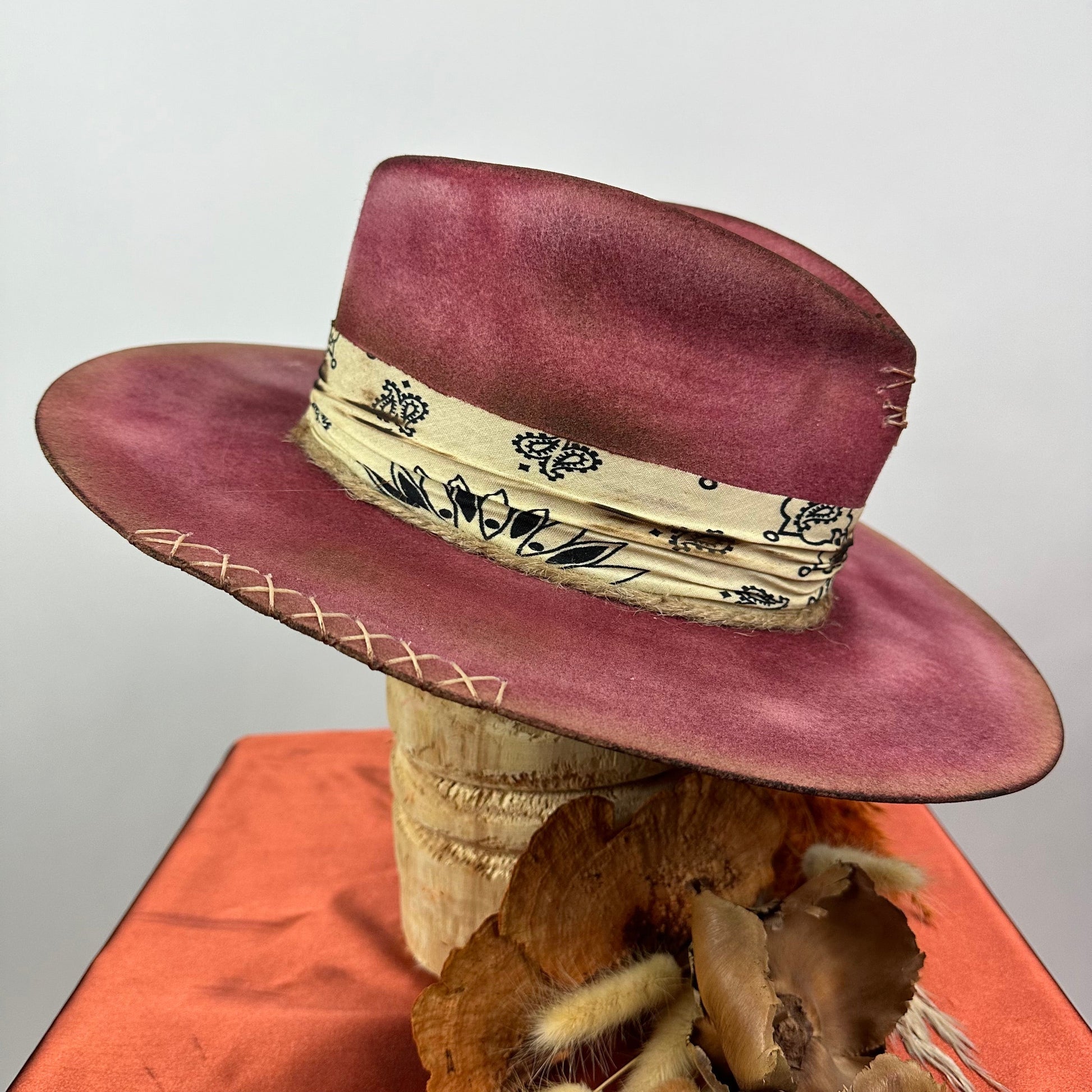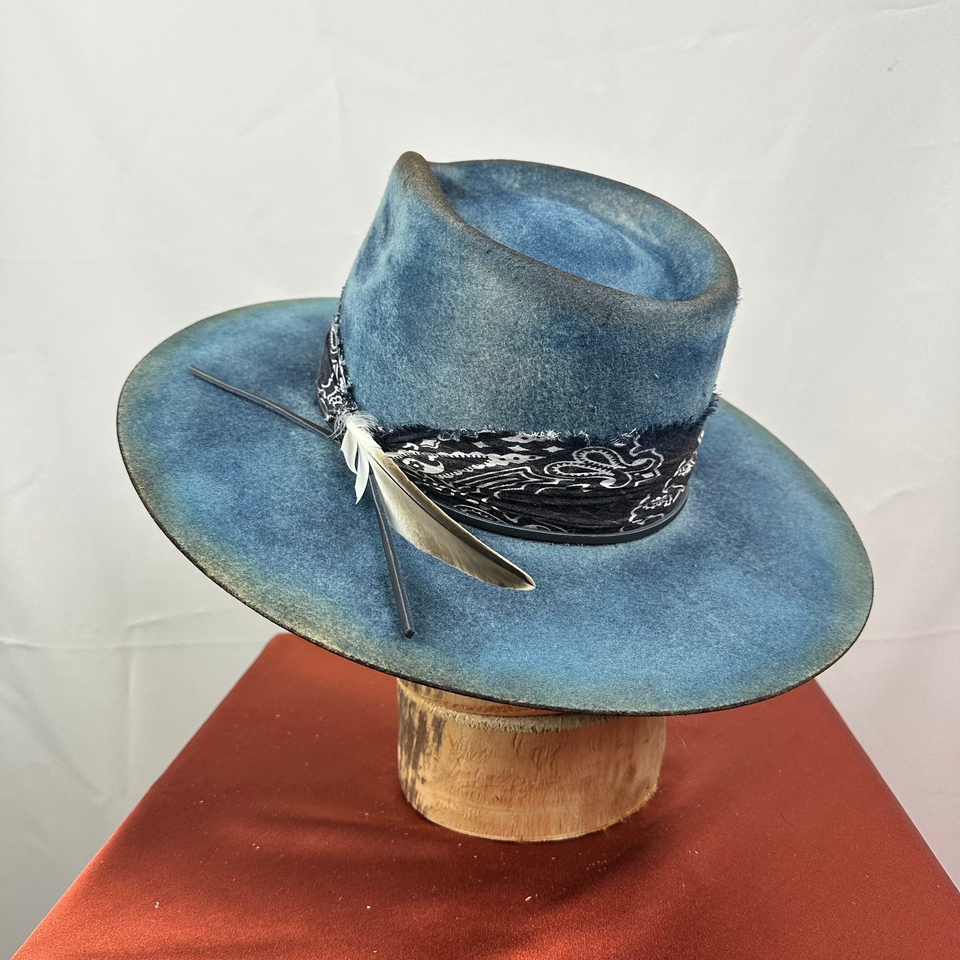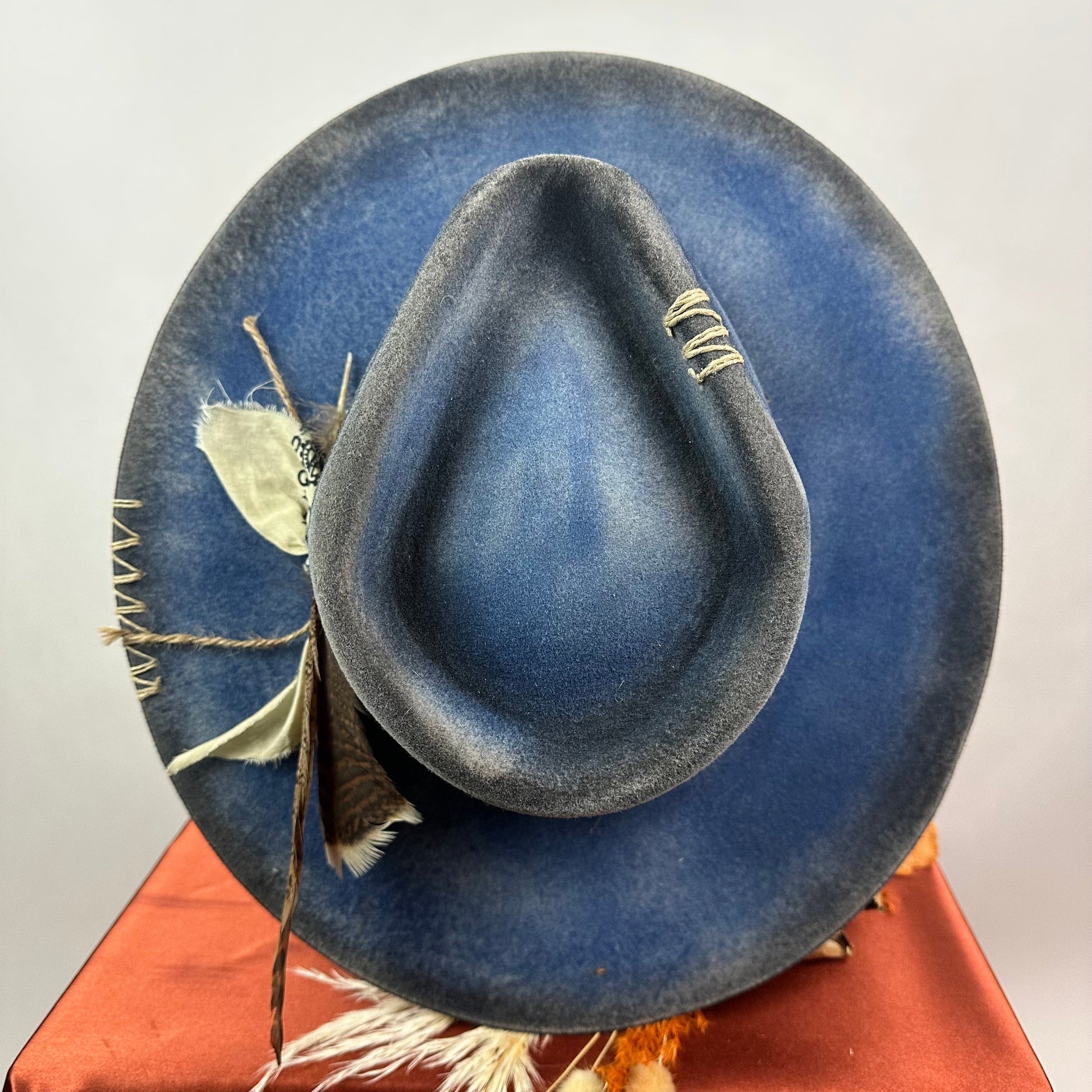 “Vintage Voyage Felt Fedora” is handcrafted, hand-dyed and hand-distressed. That means no two hats have the same color or character, making each hat truly one of a kind. Unique to each hat.