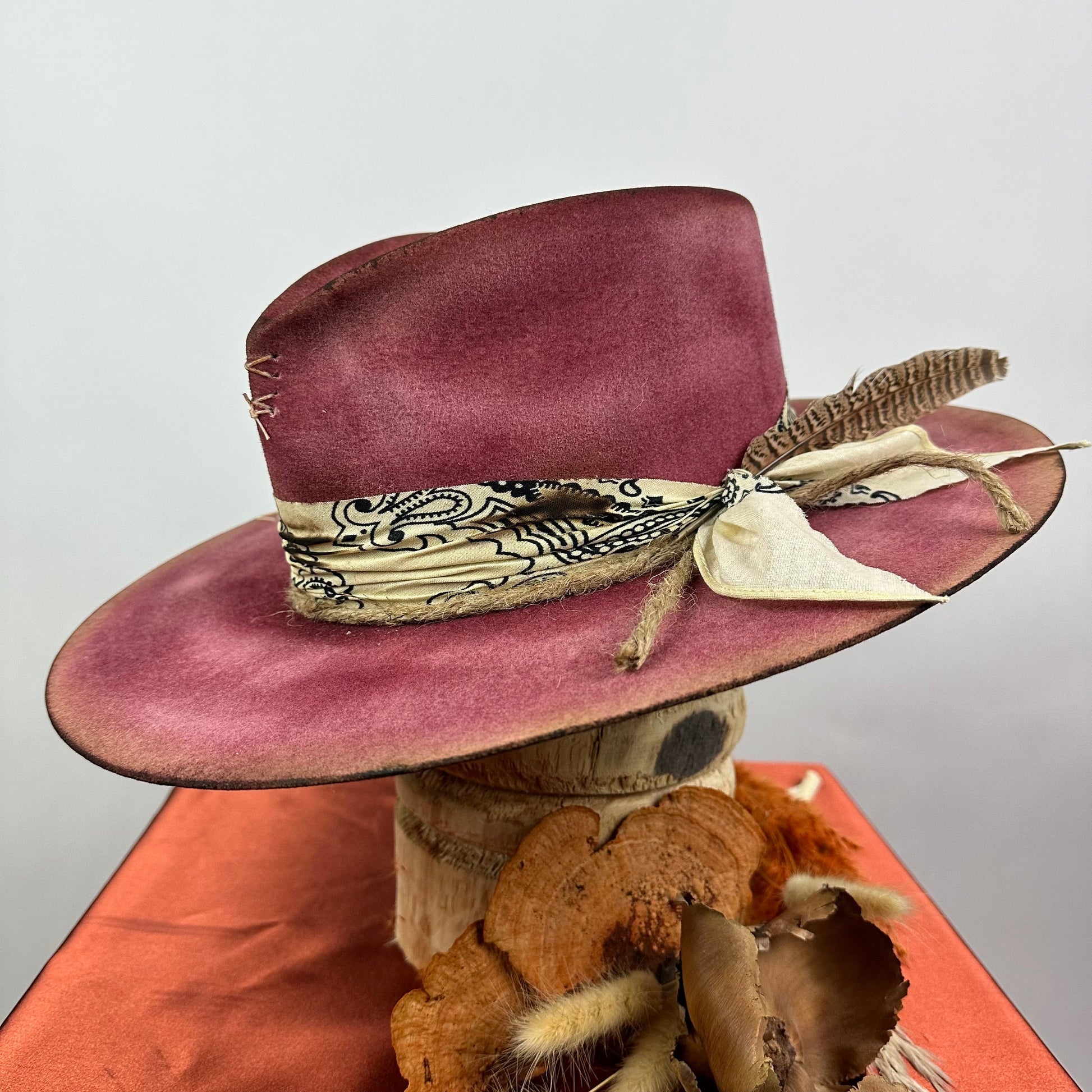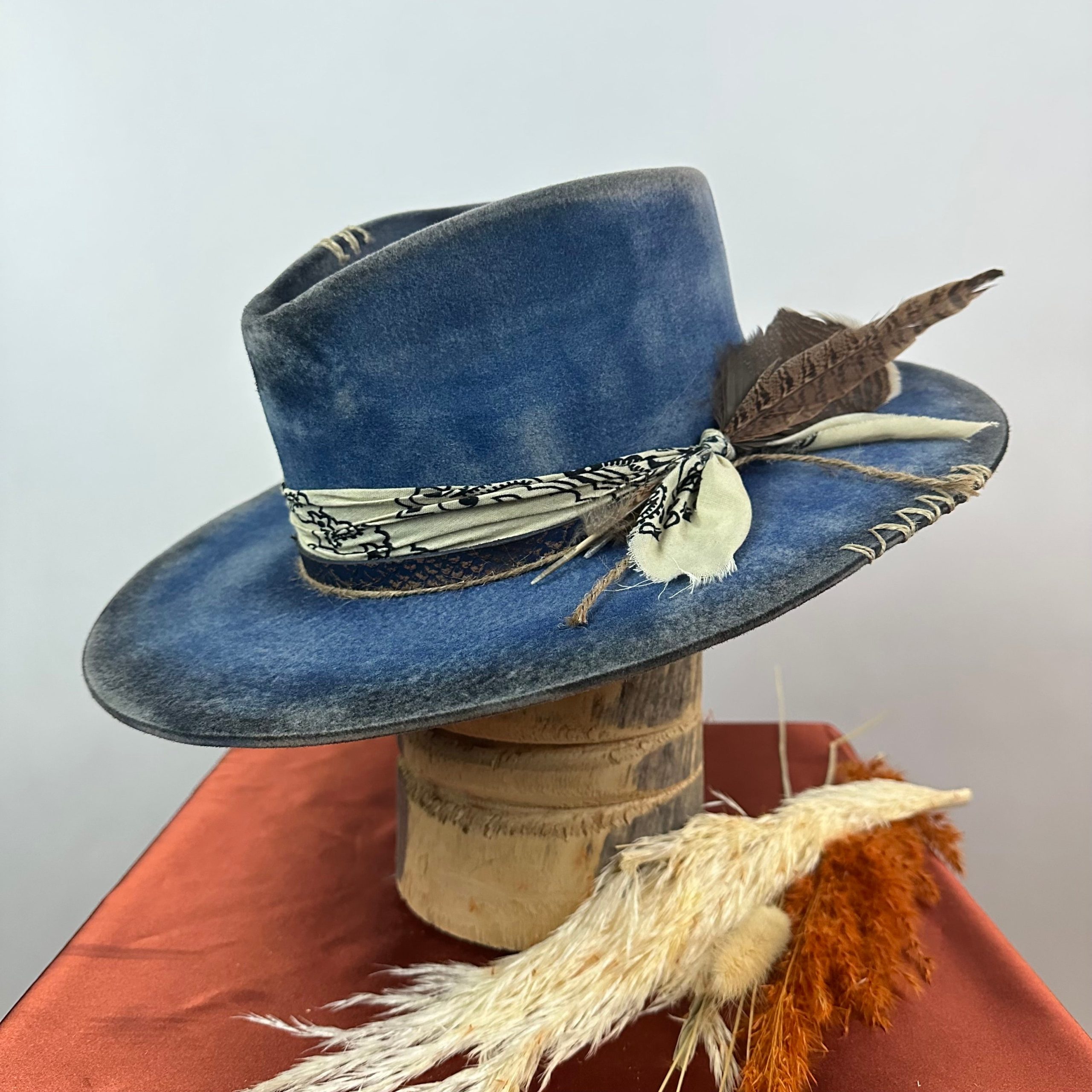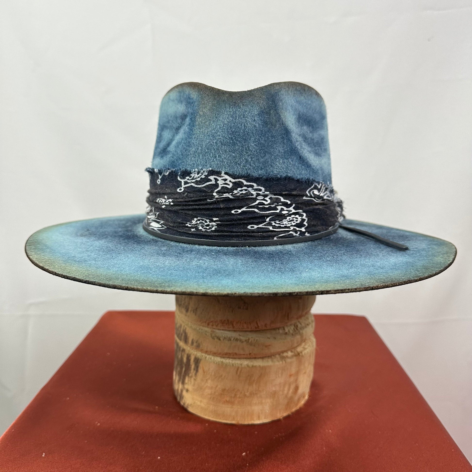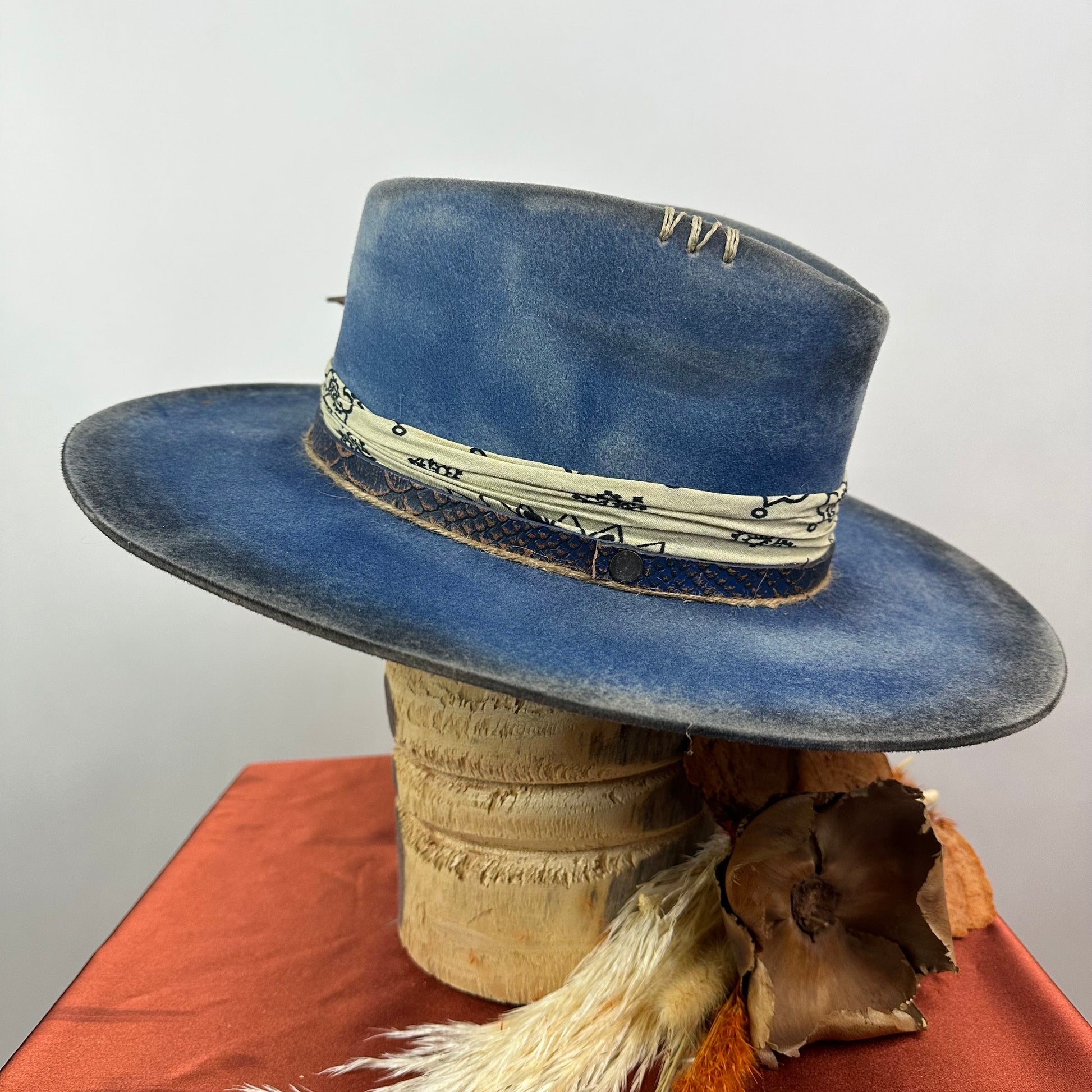 “Vintage Voyage Felt Fedora” is handcrafted, hand-dyed and hand-distressed. That means no two hats have the same color or character, making each hat truly one of a kind. Unique to each hat.