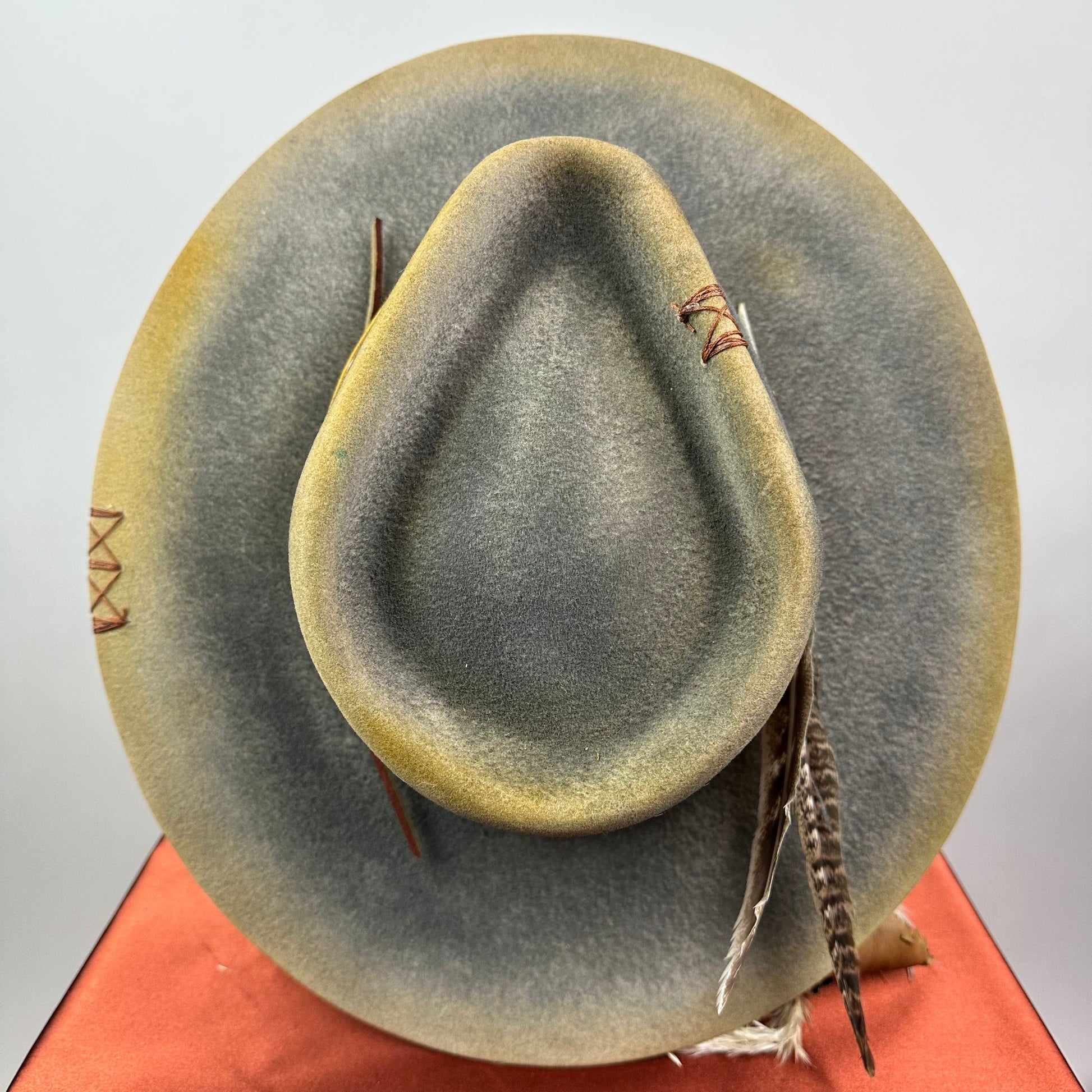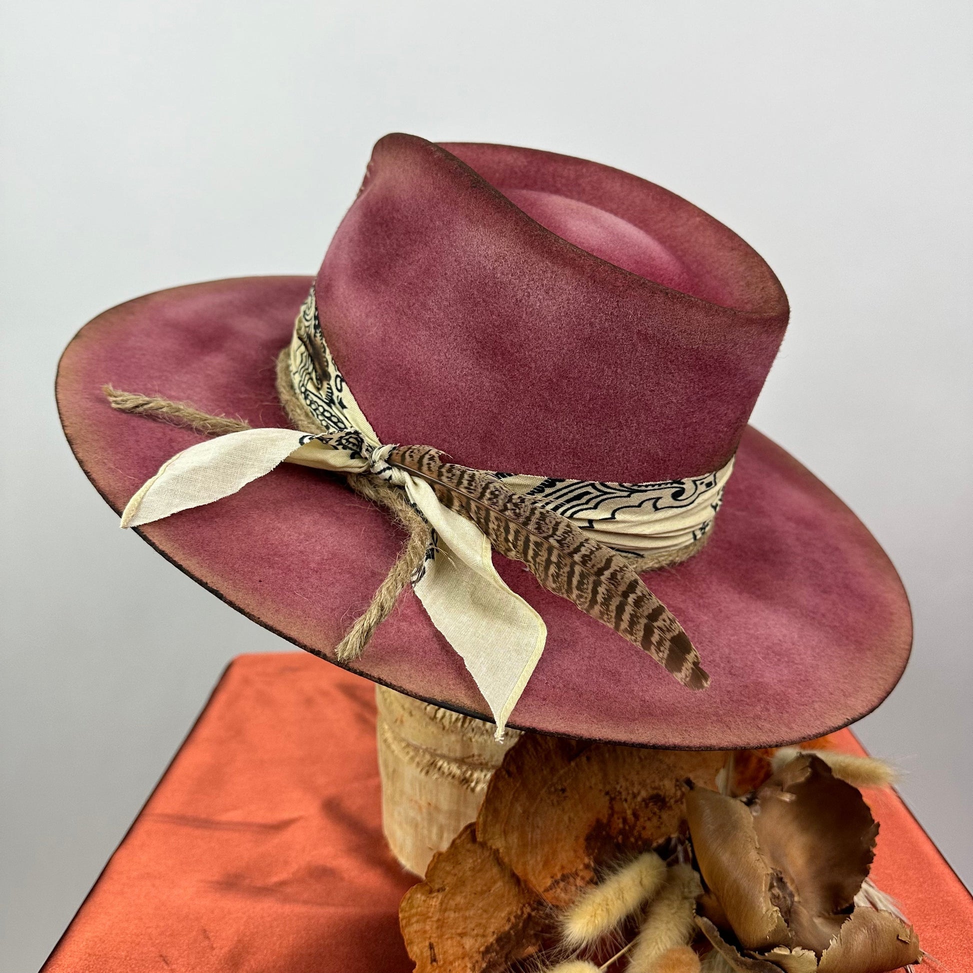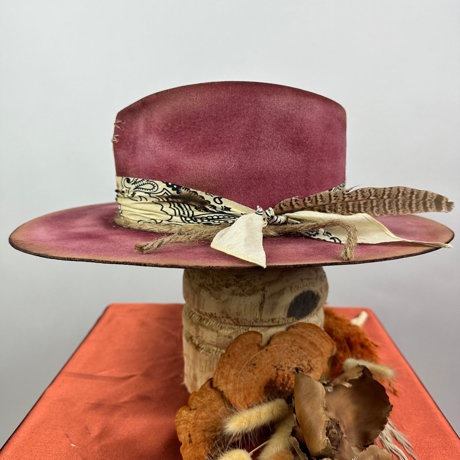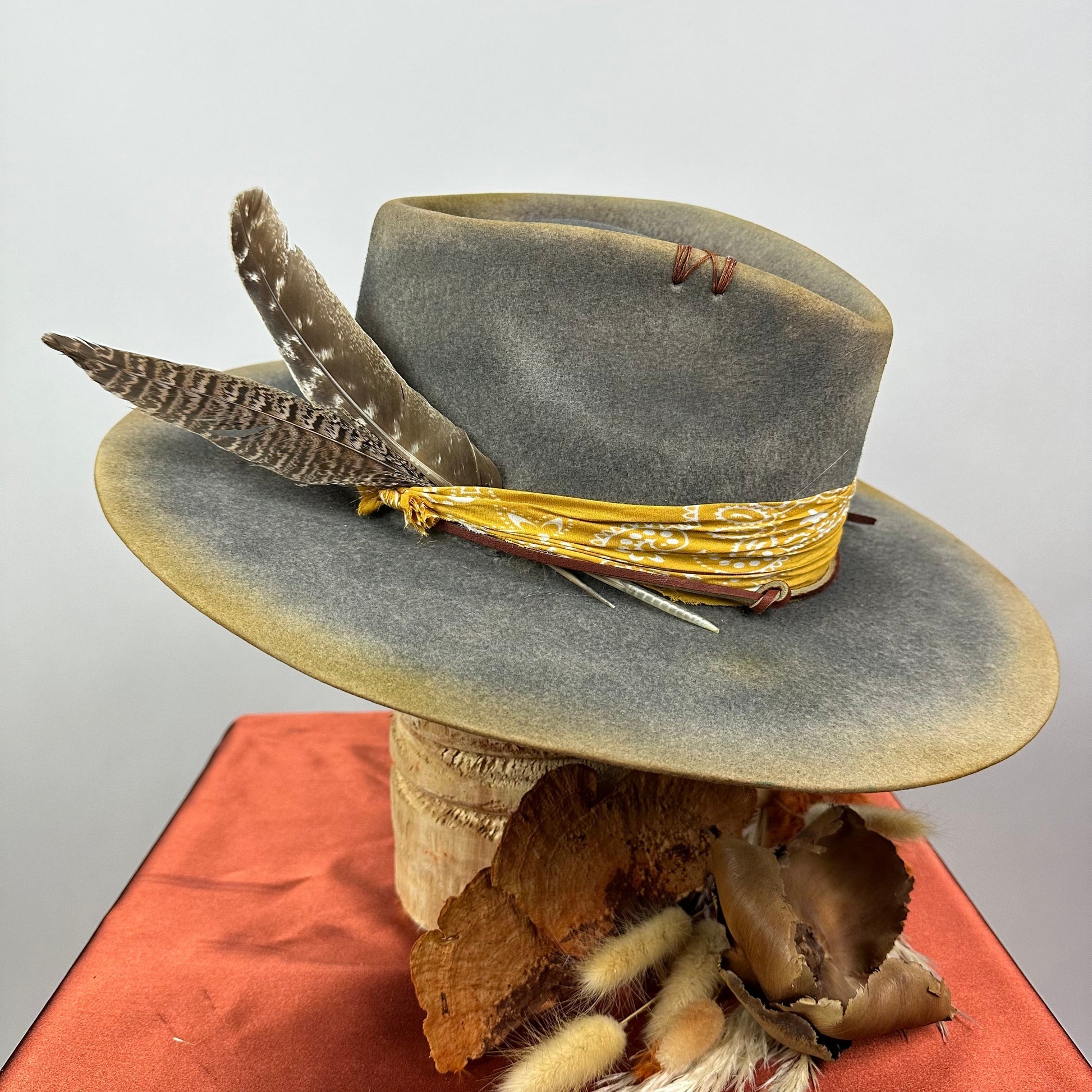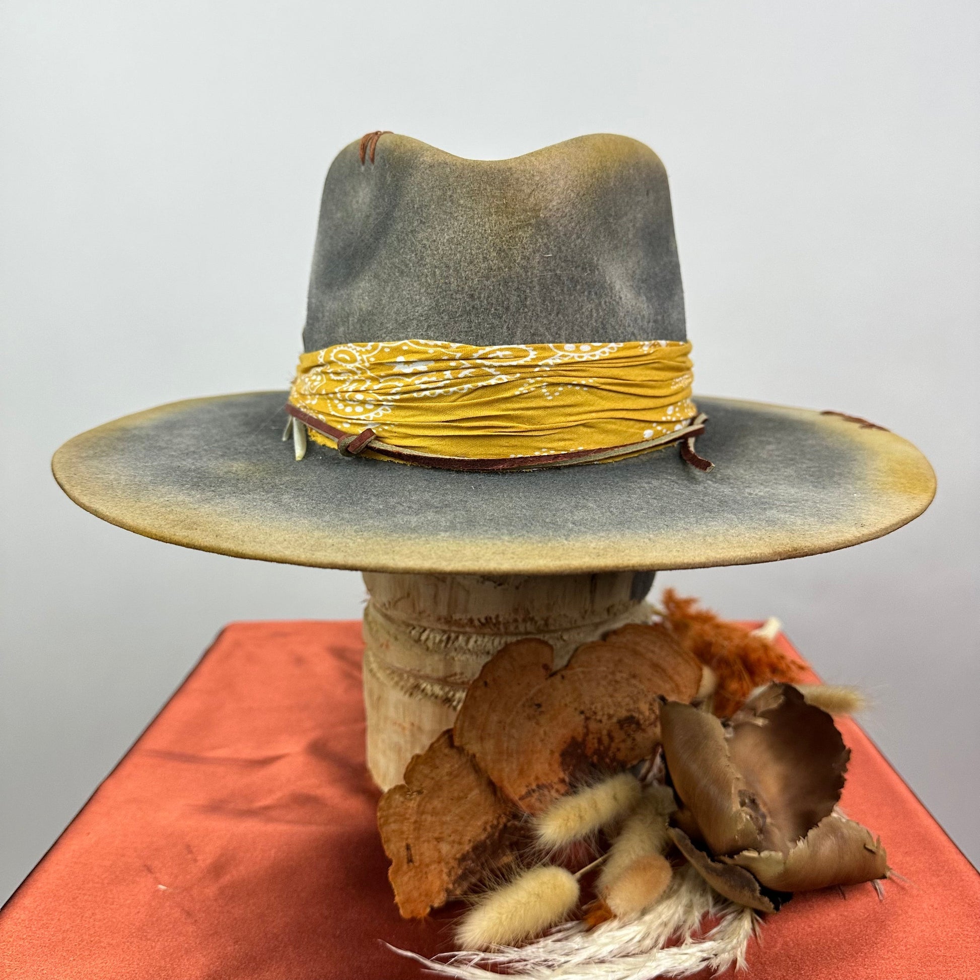 “Vintage Voyage Felt Fedora” is handcrafted, hand-dyed and hand-distressed. That means no two hats have the same color or character, making each hat truly one of a kind. Unique to each hat.