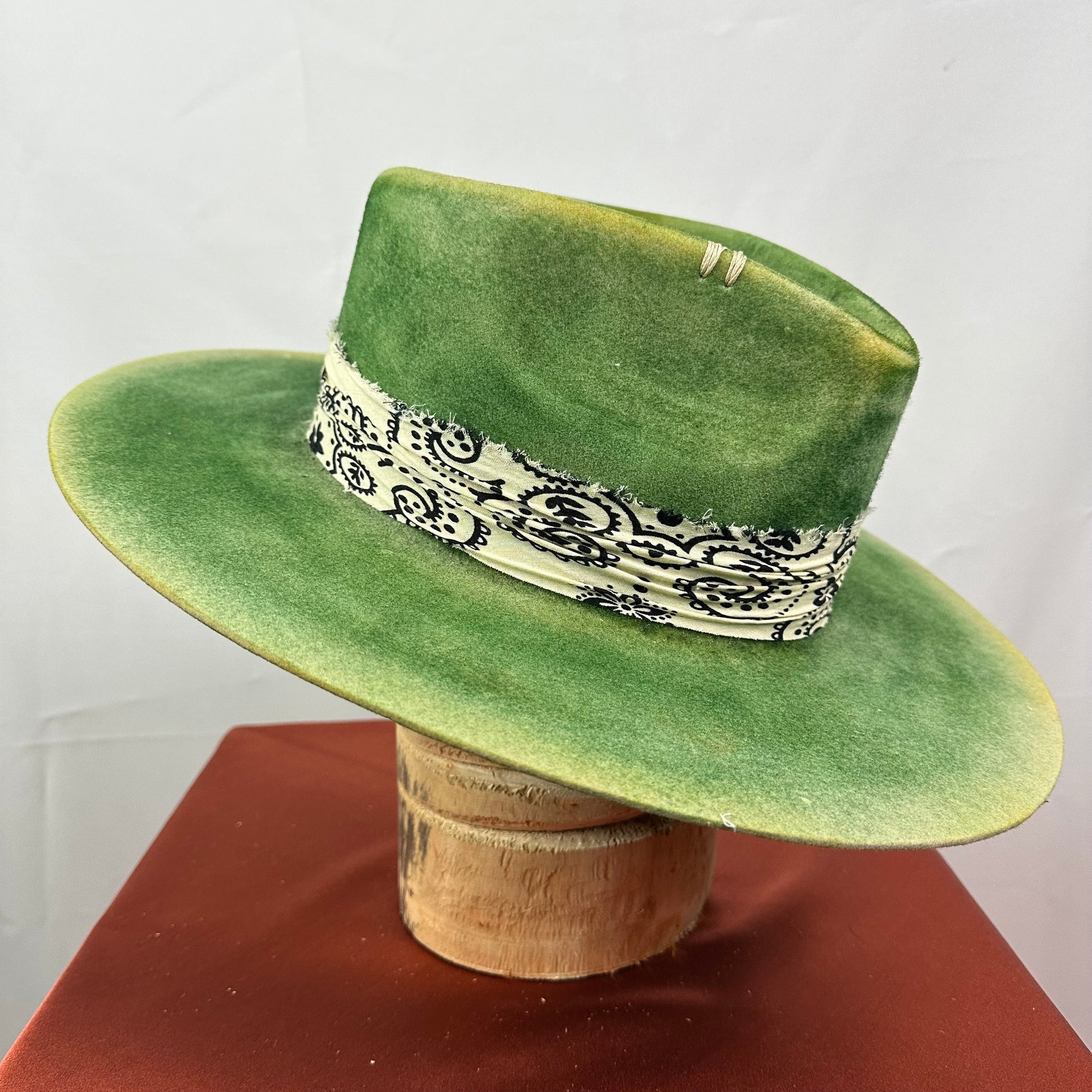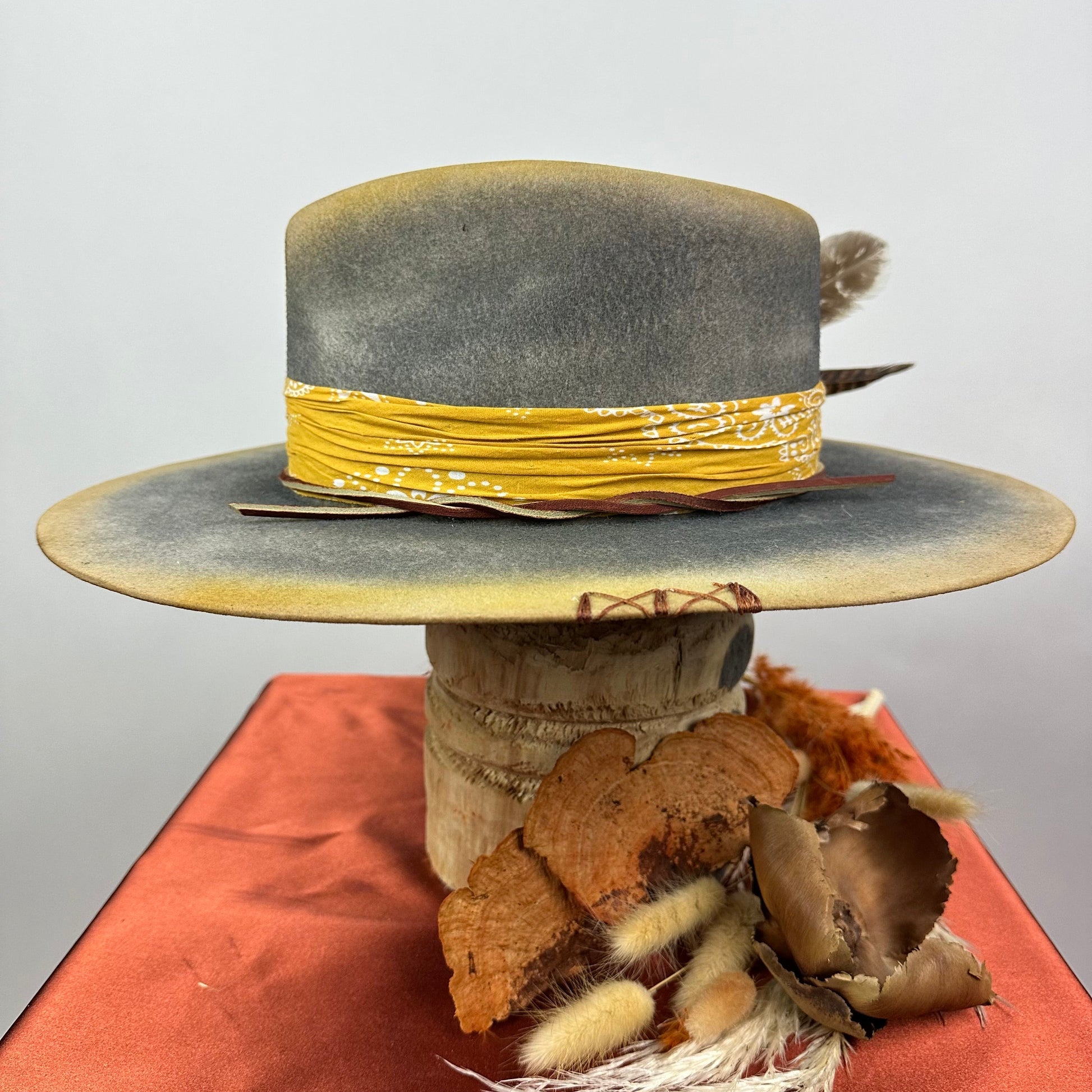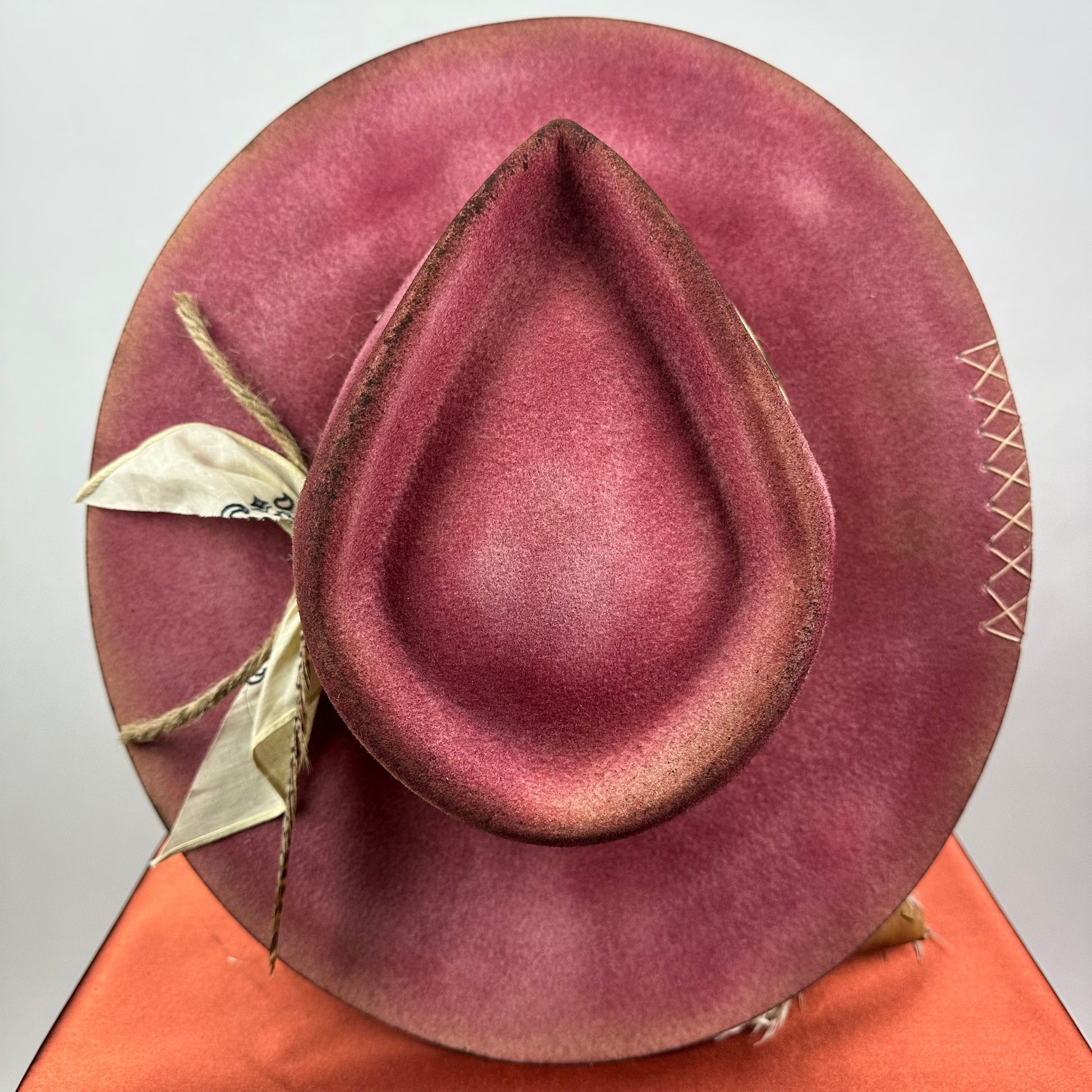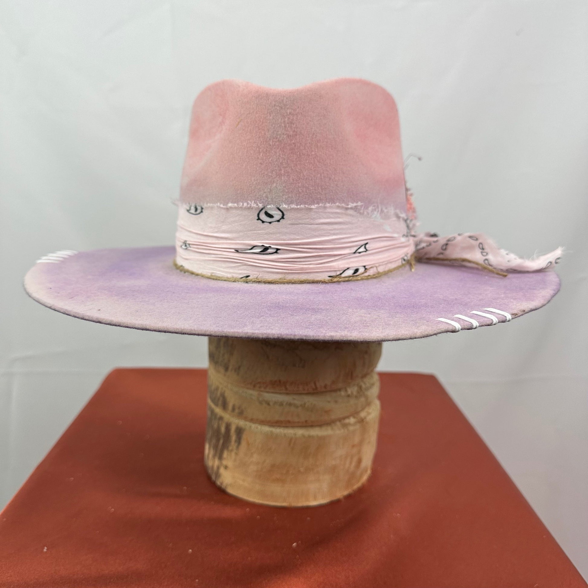 “Vintage Voyage Felt Fedora” is handcrafted, hand-dyed and hand-distressed. That means no two hats have the same color or character, making each hat truly one of a kind. Unique to each hat.