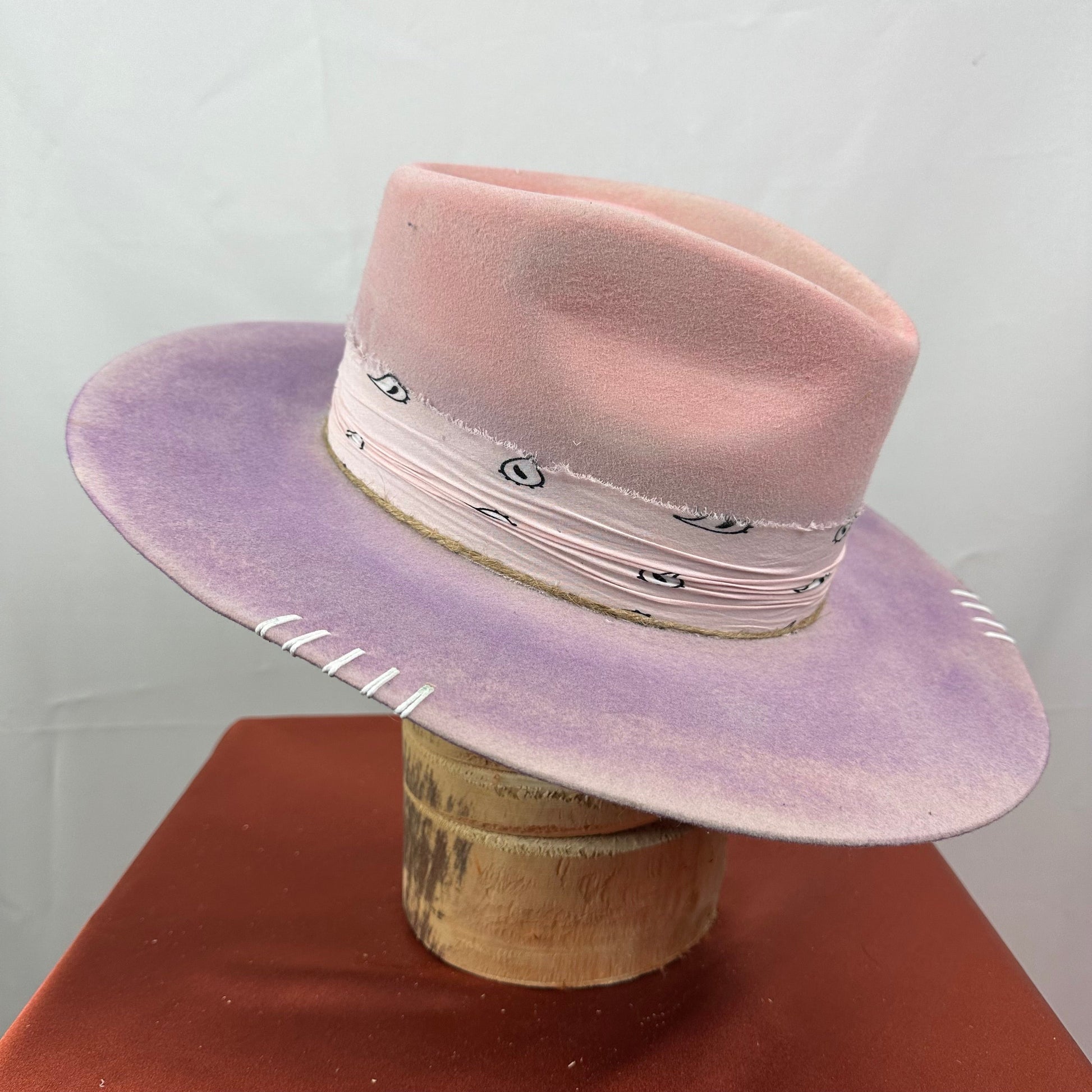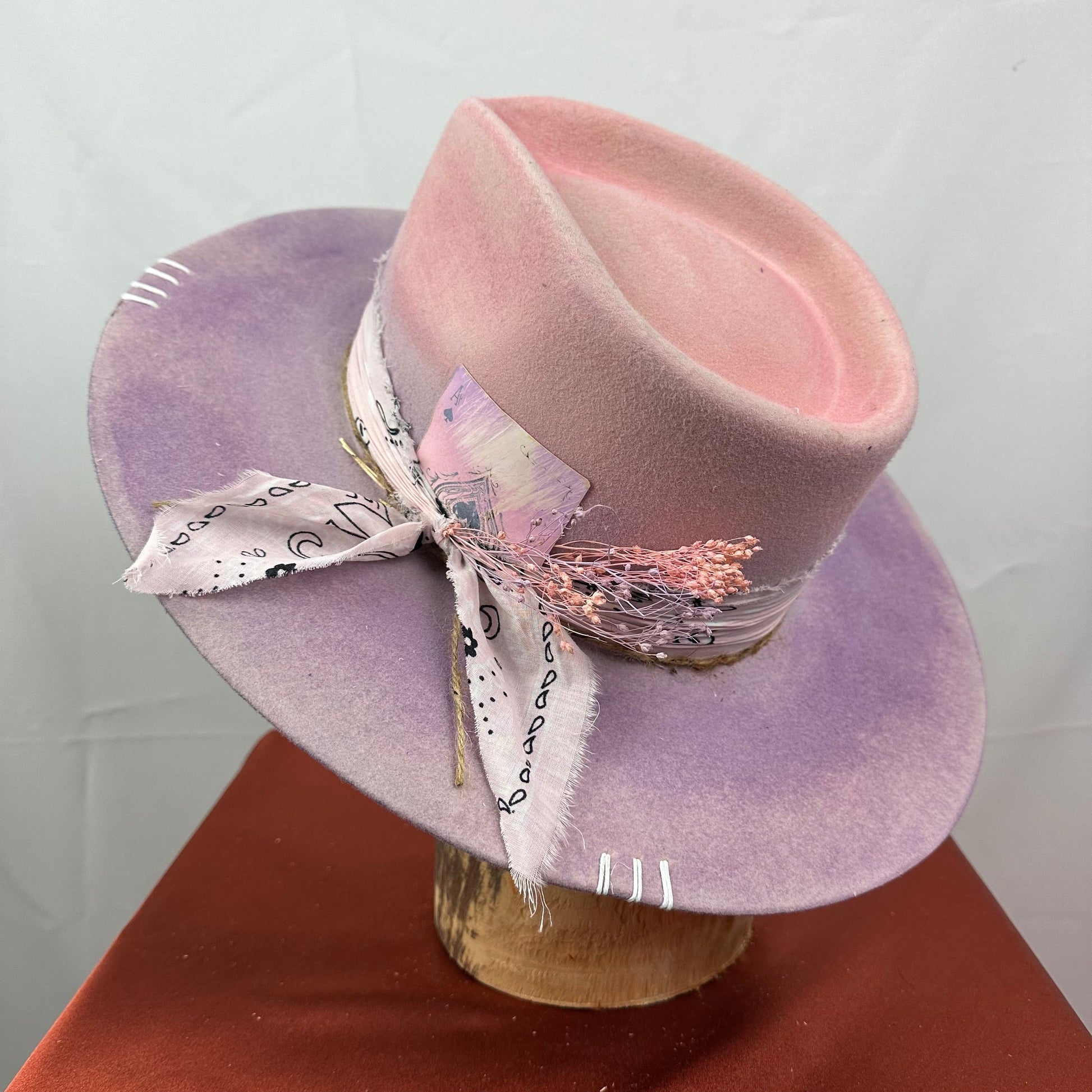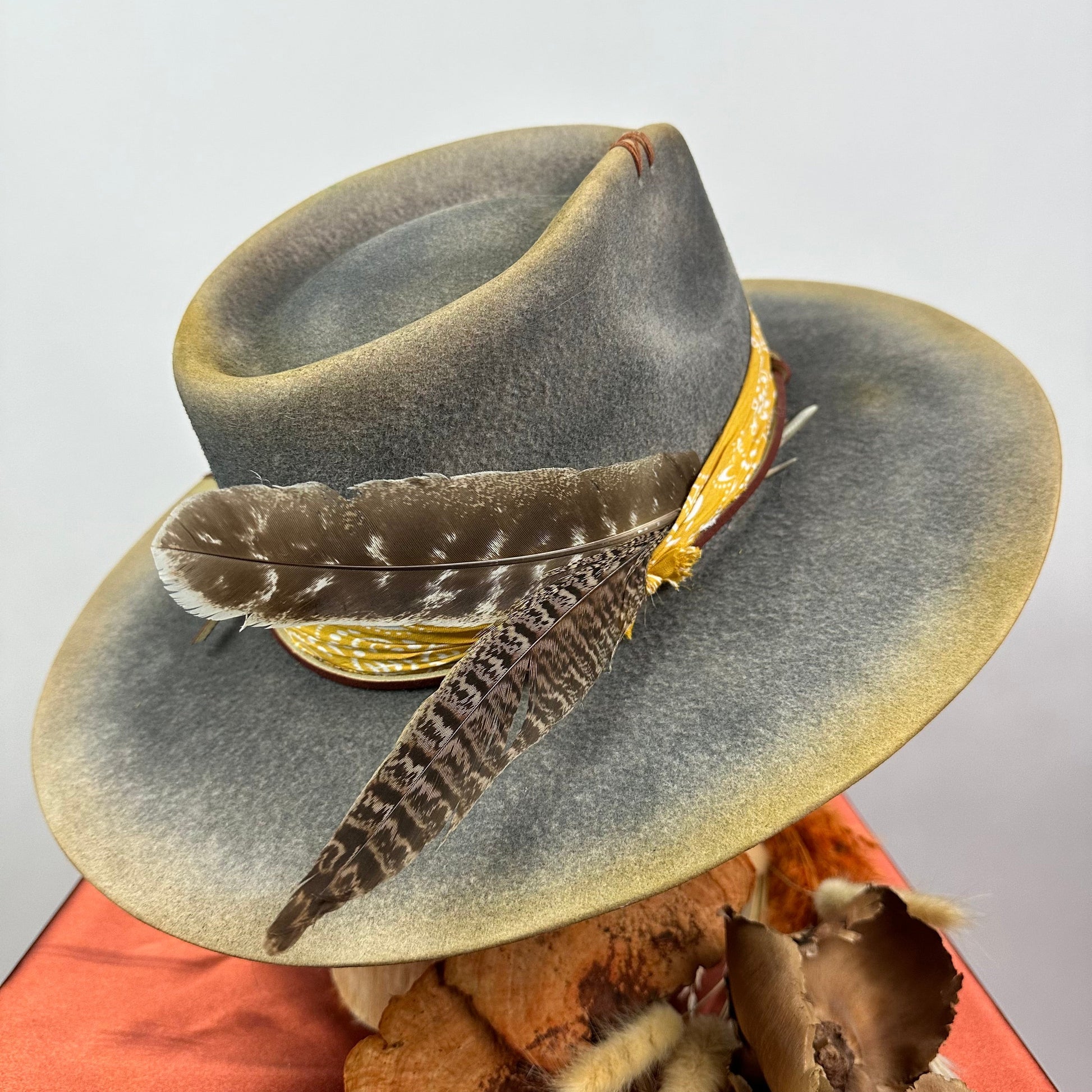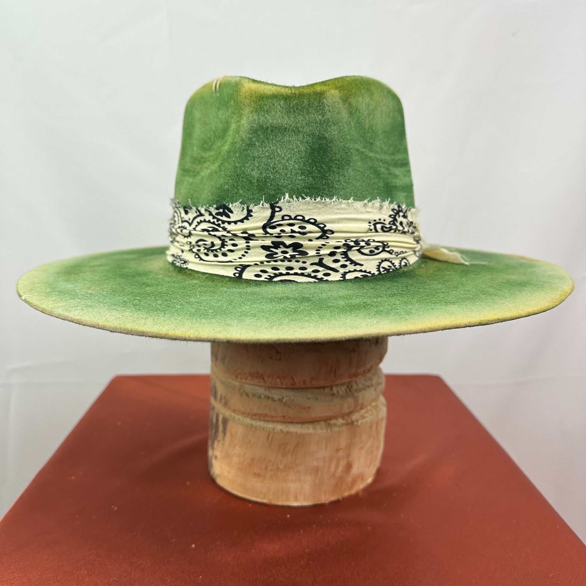 “Vintage Voyage Felt Fedora” is handcrafted, hand-dyed and hand-distressed. That means no two hats have the same color or character, making each hat truly one of a kind. Unique to each hat.