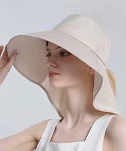 Shield yourself from the sun in style with our Women’s Outdoor Neck UV Protection Wide Brim Bucket Hat. This chic and functional hat is designed to provide maximum sun protection for your face, neck, and shoulders during outdoor activities. Stay cool and protected while flaunting a trendy look with this wide-brimmed bucket hat specially crafted for adventurous women on-the-go.