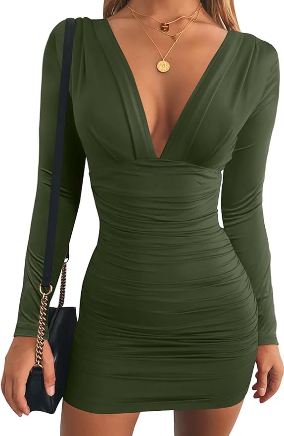 - Type: V-neck, high waist,long sleeve ,ruched,mini-length ,makes you fashion and sexy