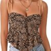 - Features: V Neck, Tie Front, Sleeveless, tie spaghetti strap, Ruffle hem, Peplum cami top. Tie Front design show the lines of the shoulders and neck to the greatest extent, revealing the graceful curves unique to woman.