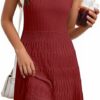 - Feature: Round neck, sleeveless, flowy a-line, slim fit, elastic fabric, hollow crochet design at the waist and hem, ruffle tiered, solid color, ribbed knit textured dresses