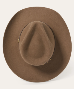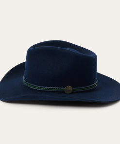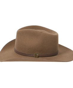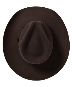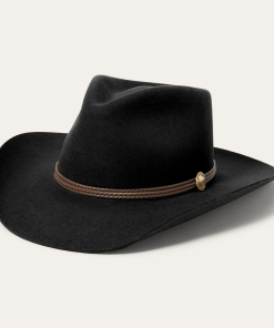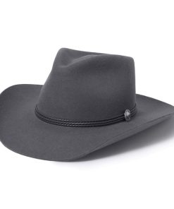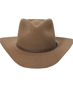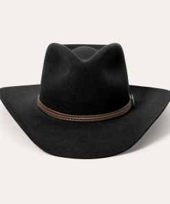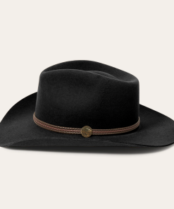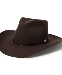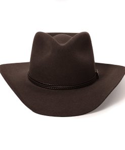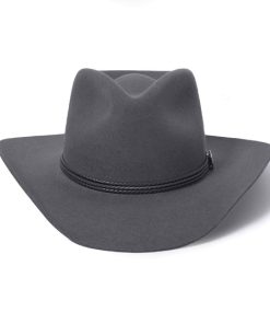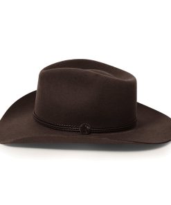 Handmade from 100% wool felt, it offers durability, comfort, and a sleek finish that stands out in any setting. The 4 1/4″ pinch front crown and 3 1/4″ brim create a classic silhouette, while the 3-cord braided leather hatband adds an authentic touch of Western elegance.